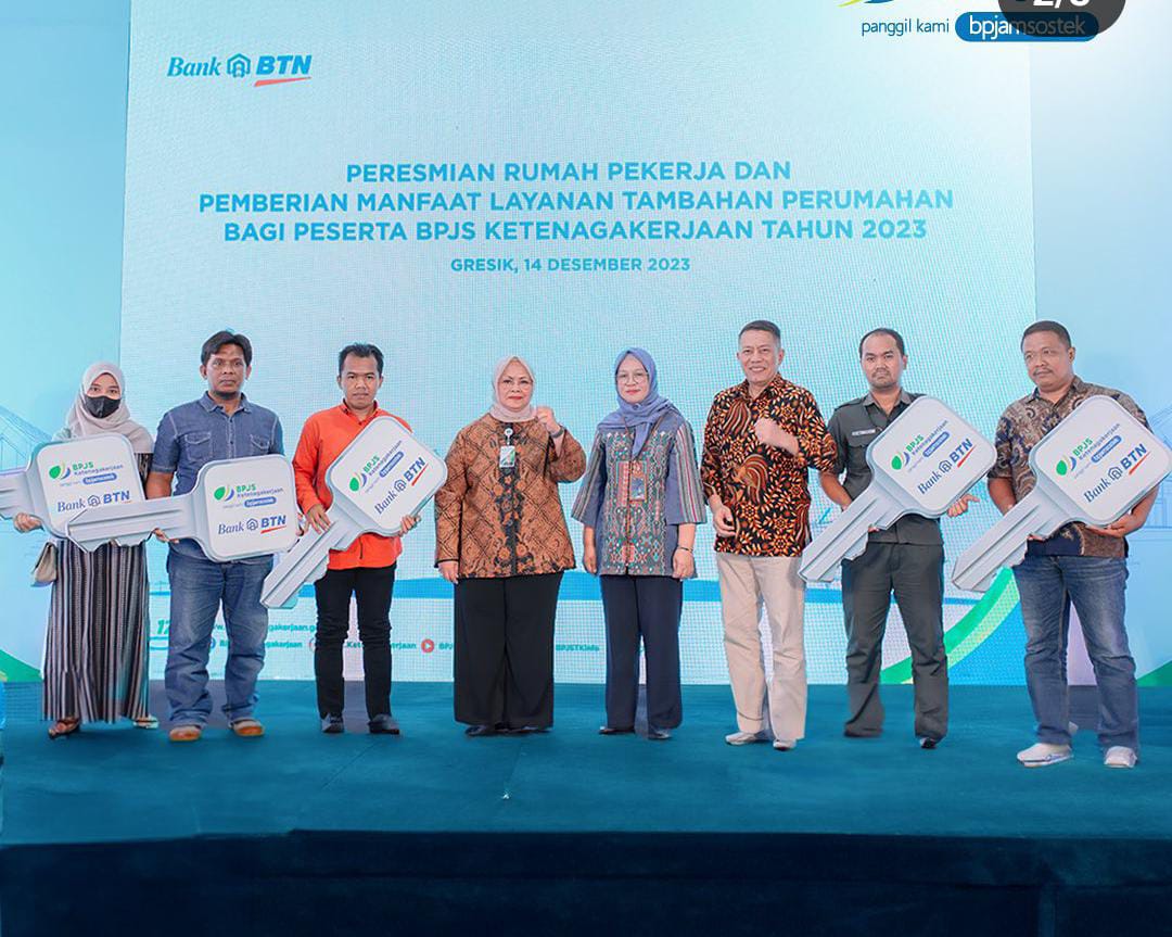 Gresik, (Haluanbanten.co.id) – Direktur Pelayanan BPJS Ketenagakerjaan Roswita Nilakurnia bersama Kepala Dinas Tenaga Kerja Kabupaten Gresik Andhy Hendro Wijaya dan Regional Head III Bank BTN Yenny Herlina meresmikan pembangunan Rumah Pekerja yang terletak di Gresik, Jawa Timur. Berdiri di atas lahan seluas 3 hektar, nantinya akan dibangun 200 unit rumah guna memenuhi kebutuhan para pekerja akan hunian yang layak dan tak jauh dari tempat kerja.