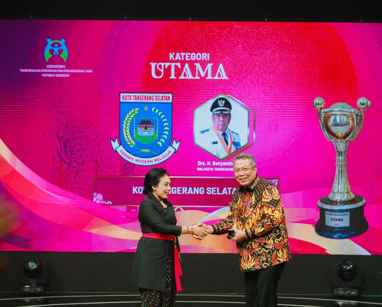 Penghargaan diserahkan langsung oleh Menteri Pemberdayaan Perempuan dan Perlindungan Anak, Bintang Puspayoga dan diterima langsung oleh Wali Kota Benyamin Davnie, di daerah Jakarta, pada Selasa (19/12).
