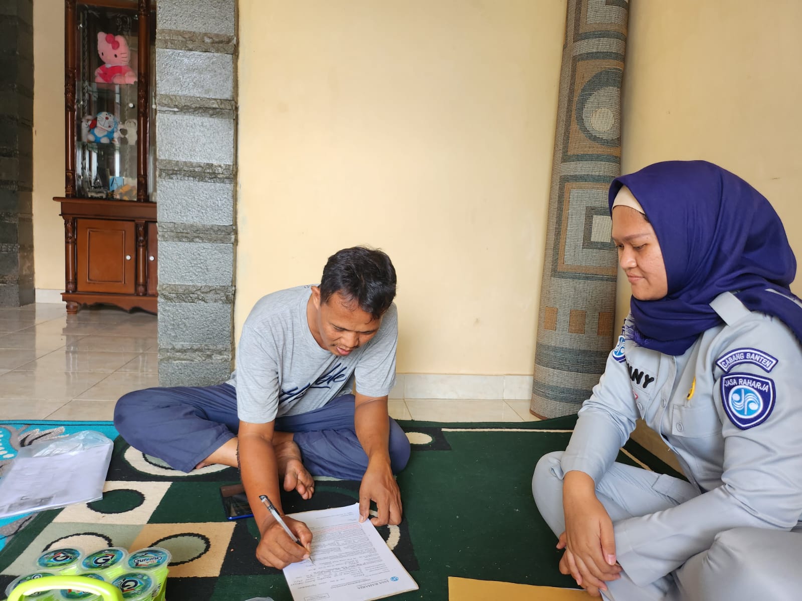 Penyerahan Santunan bertempat di kediaman korban Kp.Tiba Surak Kel.Taktakan Kec.Taktakan Kota Serang pada hari Rabu, 10 Januari 2024. “Kami mendapat informasi bahwa telah terjadi kecelakaan lalu lintas di Desa Rancasawah dengan mengakibatkan korban meninggal dunia yang beralamat di Taktakan, Serang.” Ujar Vinny menjelaskan kepada keluarga korban. “Selanjutnya kita lakukan Survey ahli waris dalam hal ini karena korban merupakan seorang suami maka ahli waris yang sah sesuai dengan keputusan Menteri Keuangan RI Nomor: KEP.15/ PMK.010/2017 tanggal 13 Februari tahun 2017 yang berhak menerima santunan Jasa Raharja sebesar Lima Puluh Juta Rupiah yaitu Suami korban bernama Rasam” Jelas Vinny.