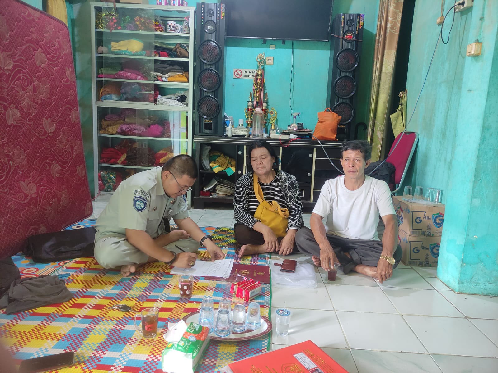 Kedatangan Petugas Jasa Raharja Samsat Ramanuju diterima langsung oleh ahli waris korban yaitu kedua orang tuanya langsung menceritakan Kejadian kecelakaan lalulintas.