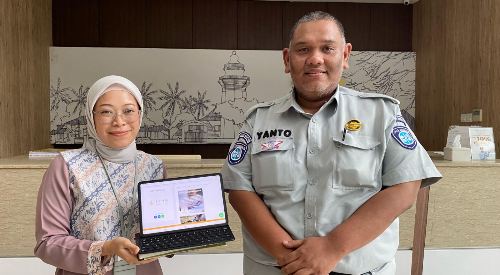 Perjanjian Kerjasama tersebut di laksanakan di Hotel Lynn Kota Serang yang dihadiri oleh Petugas Jasa Raharja Cabang Banten sebagai Penanggung Jawab Samsat Kota Serang Nuryanto Adiwibowo dan Ibu Tika Bagian Marketing Manager Lynn Hotel.