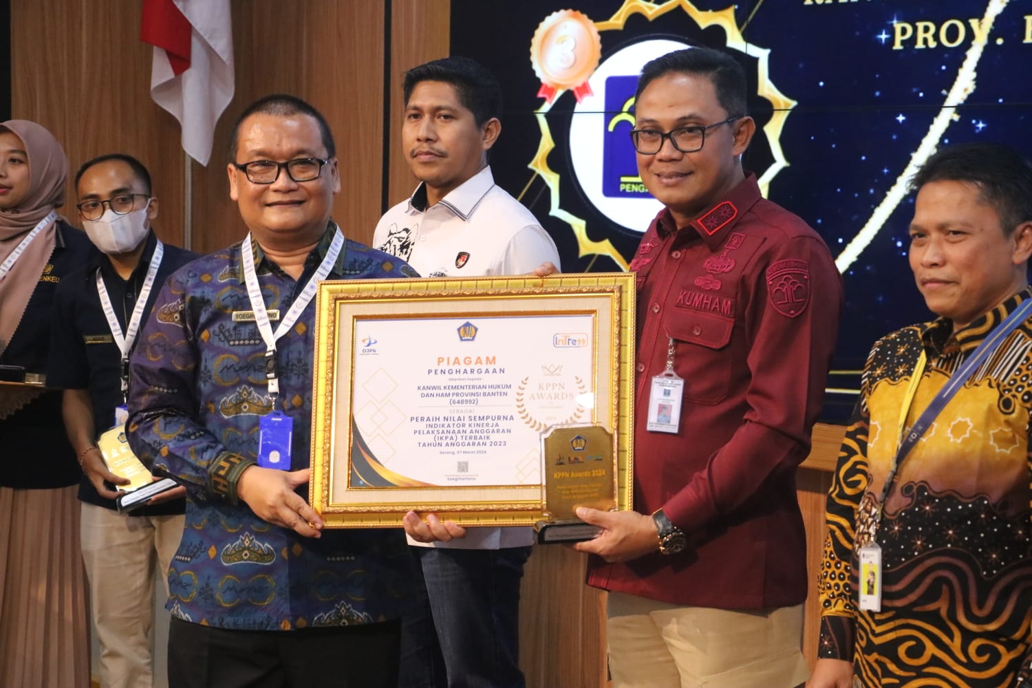 SERANG, (Haluanbanten.co.id) – Kantor Wilayah Kementerian Hukum dan Hak Asasi Manusia Banten dapat berbangga diri dengan membawa pulang dua penghargaan dari Kantor Pelayanan Perbendaharaan Negara Awards, Kamis (07/03/2024).