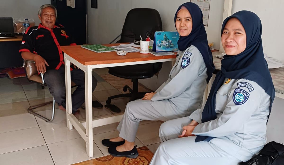 Tangerang, (haluanbanten.co.id) – Petugas Jasa Raharja Samsat Serpong Satya Wardhani dan Indah Hayati melakukan sosialisasi ke PT Giot Aman Sadayana yang berlokasi di Batan Indah Tangerang. Kegiatan ini dilakukan dalam rangka menjelaskan fungsi dan tugas pokok Jasa Raharja sekaligus mensosialisasikan UU Nomor 22 Tahun 2009 Pasal 74 tentang Lalu Lintas dan Angkutan Jalan serta aplikasi Samsat Digital Nasional (SIGNAL).