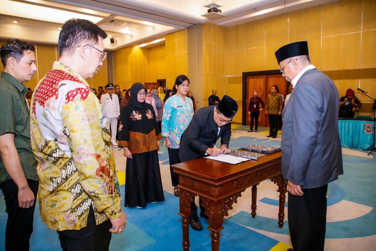 Proses pelantikan seluruh pejabat yang menduduki jabatan barunya tersebut dipimpin oleh Wali Kota Tangerang Selatan Benyamin Davnie, di Aula Blandongan Puspemkot Tangsel.