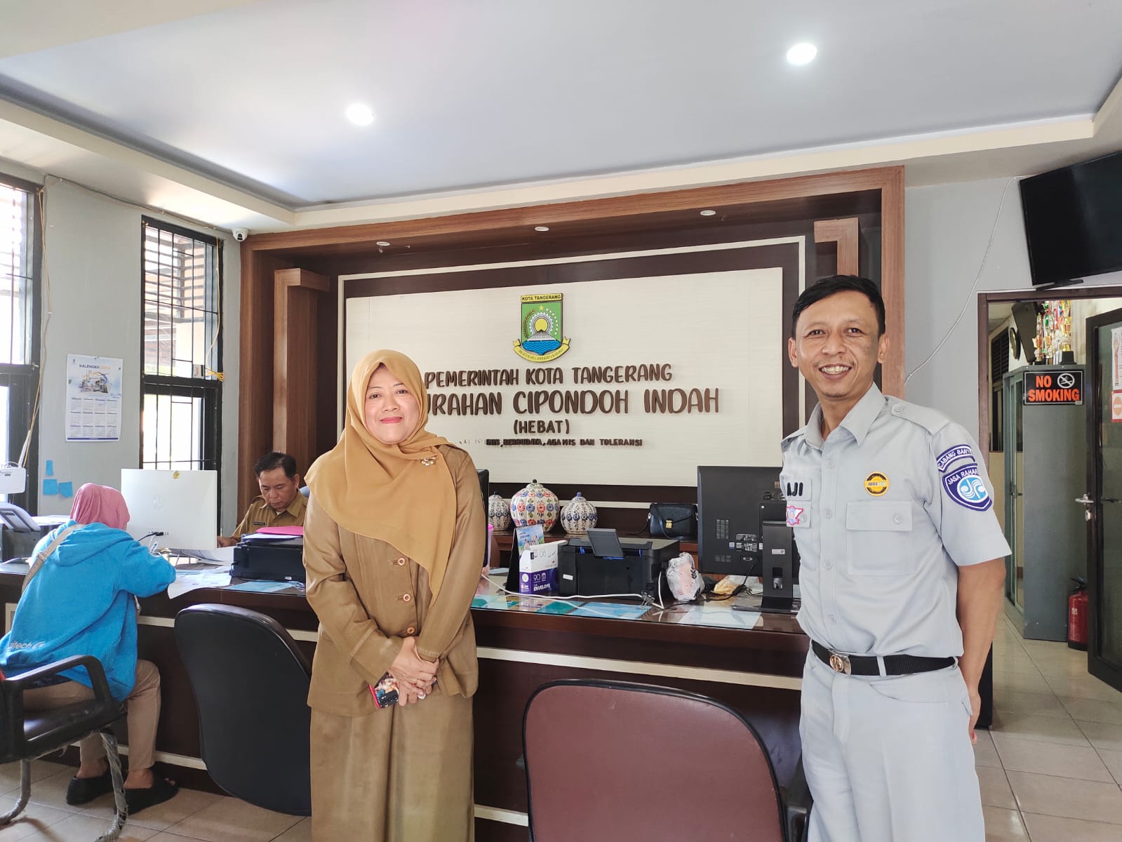 Tangerang, (haluanbanten.co.id) – Petugas Samsat Gerai Larangan, Devianto Aji Prasetya melakukan kunjungan ke Kantor Kelurahan Cipondoh Indah langsung disambut oleh Kepala Seksi Tata Pemerintahan Tari (22/04) Sekaligus berkoordinasi dalam rangka sosialisasi pelayanan tentang jaminan asuransi kecelakaan lalu lintas dan sosialisasi program Samsat Digital Nasional (SIGNAL) di wilayah Provinsi Banten.