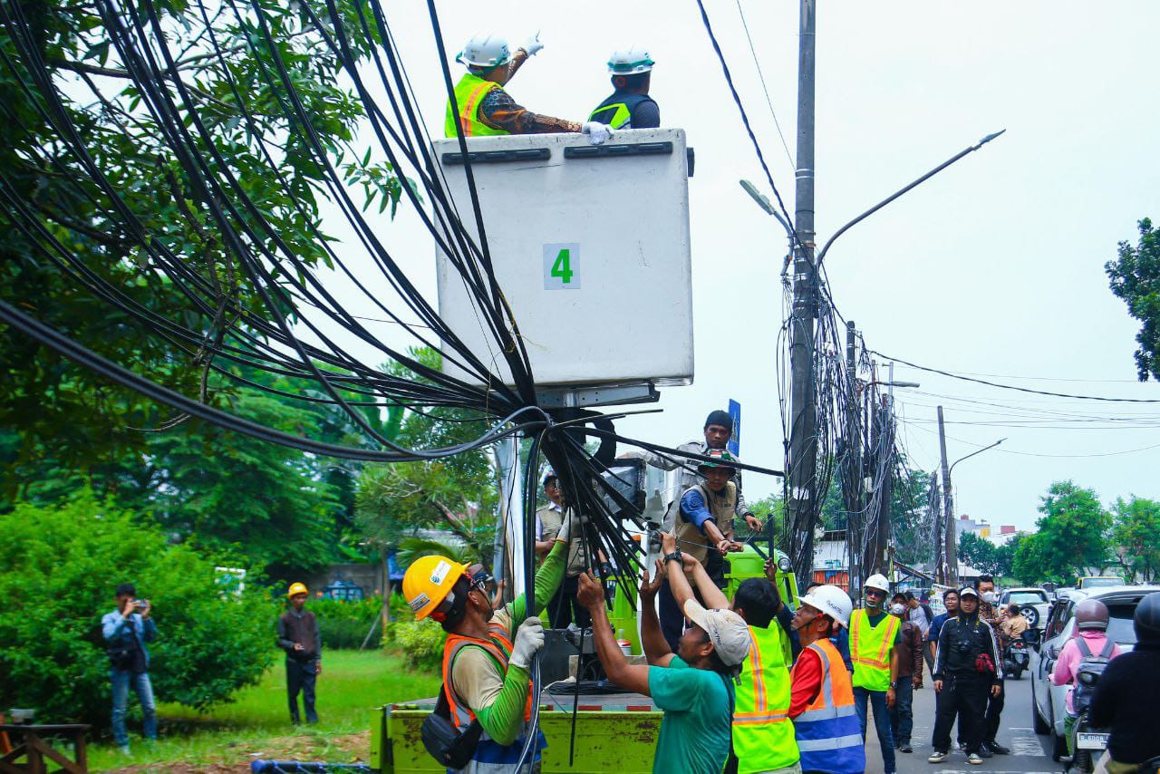 “Pada tahun ini kami bersama Asosiasi Pengusaha Jaringan Telekomunikasi (Apjatel) kembali melakukan penertiban dan perapihan kabel-kabel udara yang ada di Tangerang Selatan, ada 5 titik tahun ini. Setelah tahun 2023 ada 3 ruas yang sudah kita lakukan, baik Parakan, Benda Raya, dan di Jalan Ciater ini,” ujar Pilar.