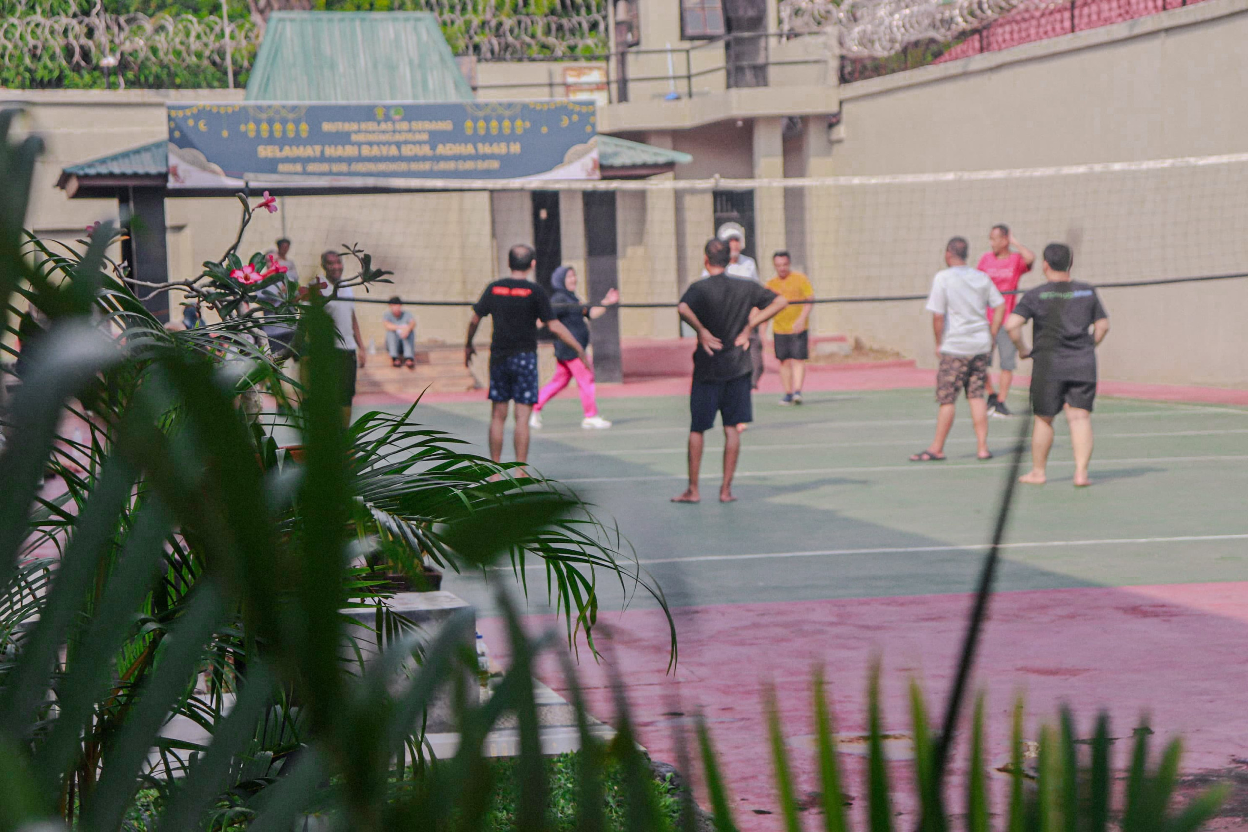 Sementara itu, pertandingan bola volly antar warga binaan pemasyarakatan diadakan di lapangan olahraga rutan serang dibawah pengamanan yang sesuai dengan standar operasional prosedur pada pukul 09:00 WIB.