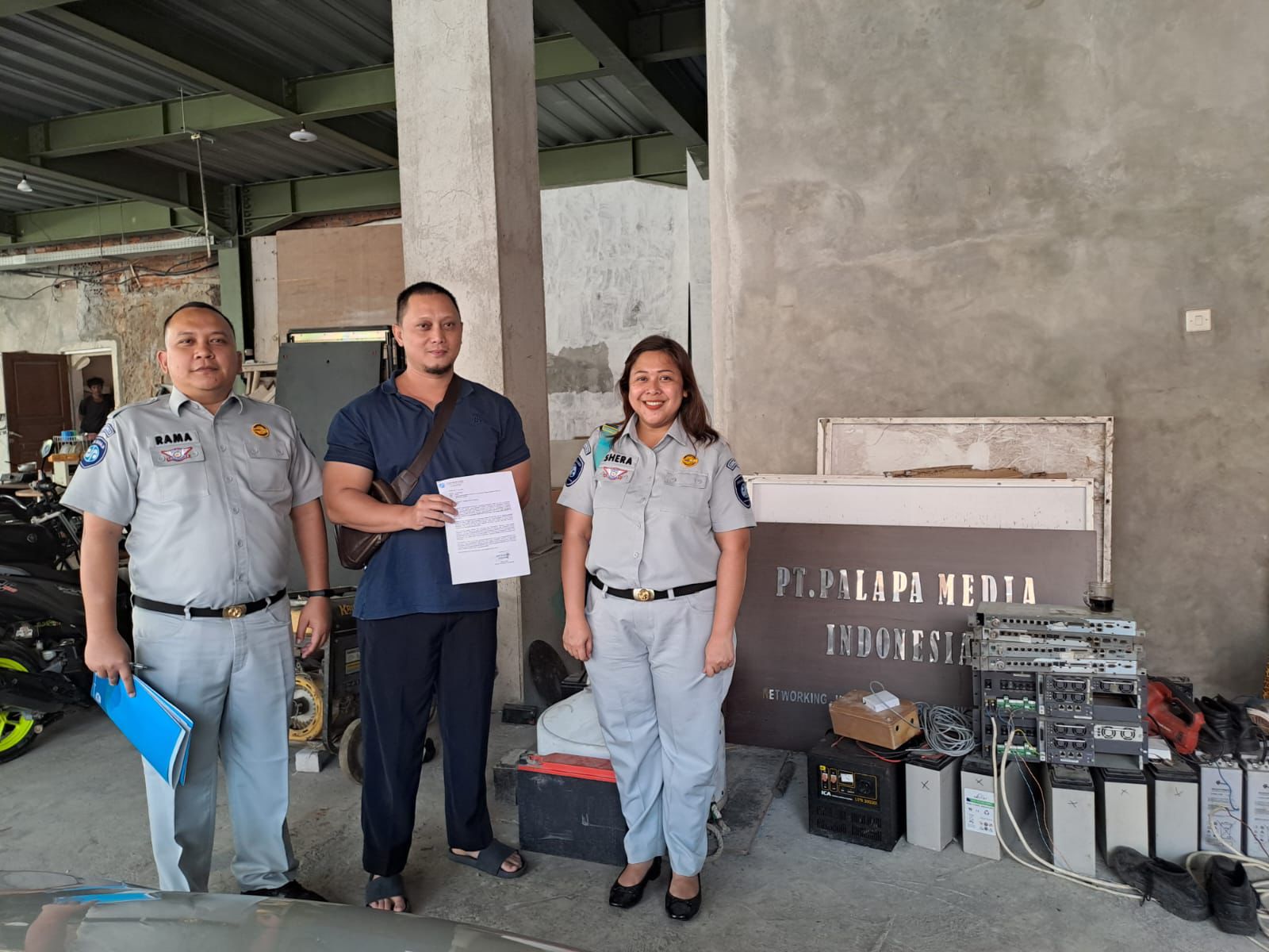 Tangerang, (haluanbanten.co.id) – Petugas Jasa Raharja Tangerang Shera Bersama Rama Budhiarto melakukan kunjungan ke PT. Palapa Media Indonesia yang berlokasi di Serua Ciputat. Kegiatan tersebut merupakan pelaksanaan program SIGAP (Samsat Initiative For Growth Achievement) yang bertujuan untuk menjalin kerja sama antara perusahaan atau instansi kedinasan dalam hal meningkatkan kepatuhan dan kesadaran pemilik kendaraan bermotor agar melakukan pembayaran Pajak Kendaraan Bermotor (PKB) dan Sumbangan Wajib Dana Kecelakaan Lalu Lintas Jalan (SWDKLLJ).