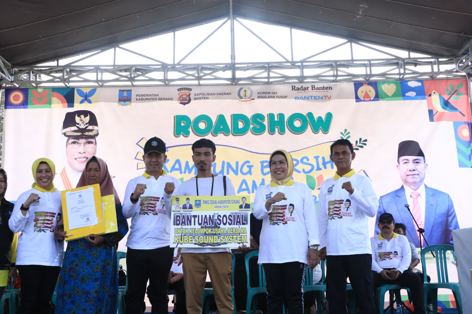 Turut hadir pada roadshow tersebut Sekretaris Daerah (Sekda) Nanang Supriatna, para kepala organisasi perangkat daerah (OPD), perwakilan TNI dan Polri, Ketua TP PKK Kabupaten Serang, Habibah dan ribuan warga dari 5 kecamatan.