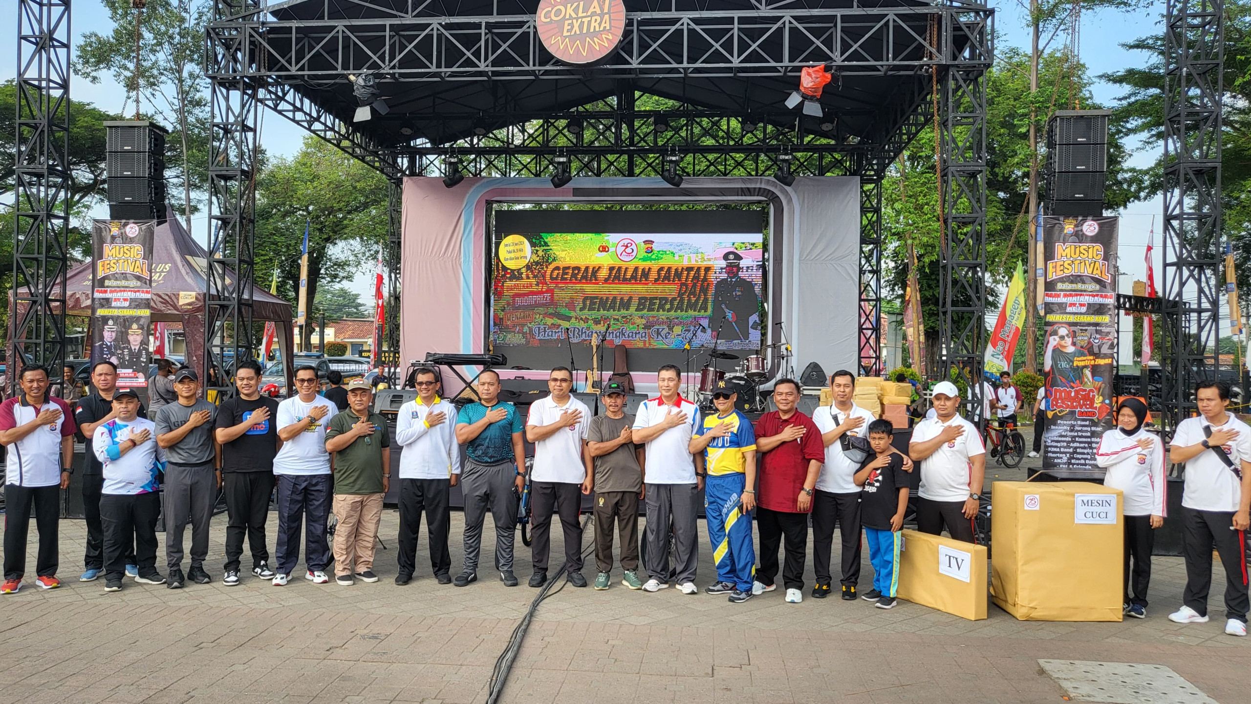 SERANG, (Haluanbanten.co.id) – Dalam rangka menyemarakkan HUT Bhayangkara ke-78, Polresta Kota Serang menggelar kegiatan Jalan Sehat dan senam bersama Pemerintah Daerah Kota Serang, TNI-Polri, APH dan masyarakat di Alun-Alun Barat Kota Serang, Jumat (28/6)