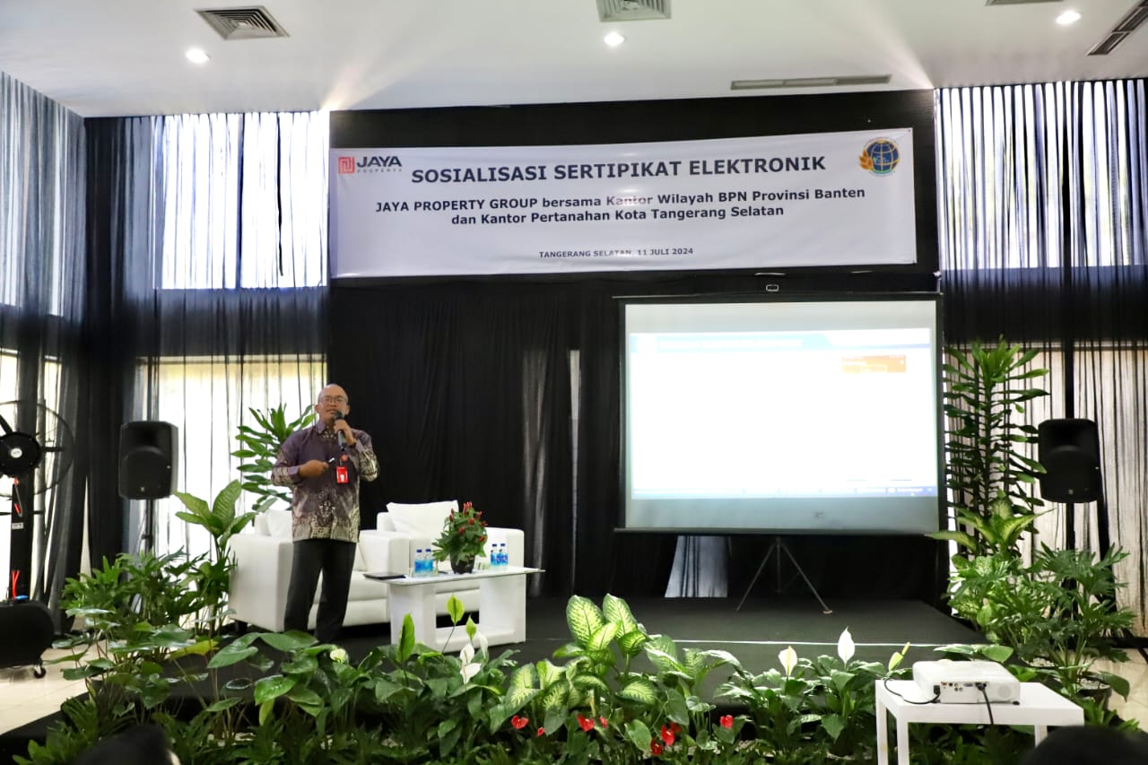 TANGSEL, (Haluanbanten.co.id) – Kantor Wilayah BPN Provinsi Banten hadir sebagai narasumber dalam acara Sosialisasi Sertipikat Elektronik yang diselenggarakan oleh Jaya Group Property.