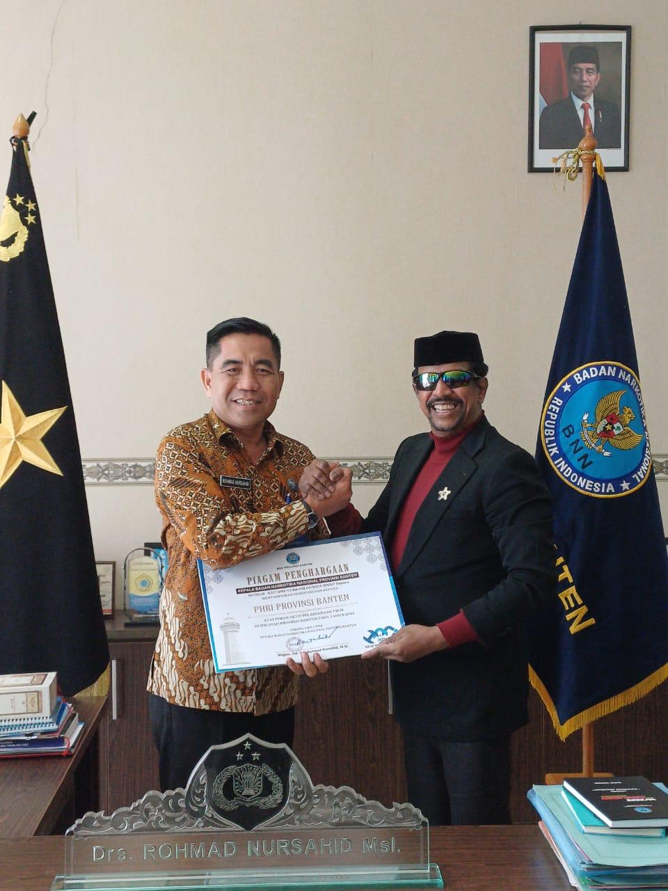 Dalam kegiatan ini dilaksanakan penyematan tanda anggota kehormatan PHRI kepada Kepala BNN Provinsi Banten oleh ketua PHRI dan sebaliknya Kepala BNN Provinsi Banten Memberikan Piagam Apresiasi kepada PHRI Banten atas dukungan dan peran sertanya dalam P4GN di wilayah Provinsi Banten.