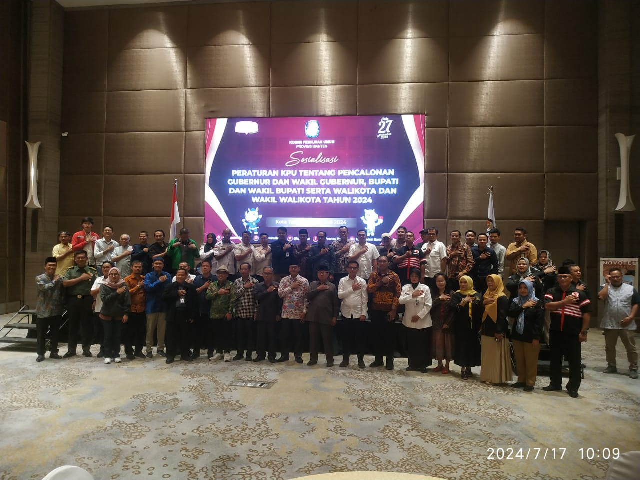 TANGERANG, (Haluanbanten.co.id) – Komisi Pemilihan Umum (KPU) Provinsi Banten gelar Sosialisasi Peraturan mengenai Pencalonan Gubernur dan Wakil Gubernur, Bupati dan Wakil Bupati, serta Walikota dan Wakil Walikota Tahun 2024, Rabu (17/07).