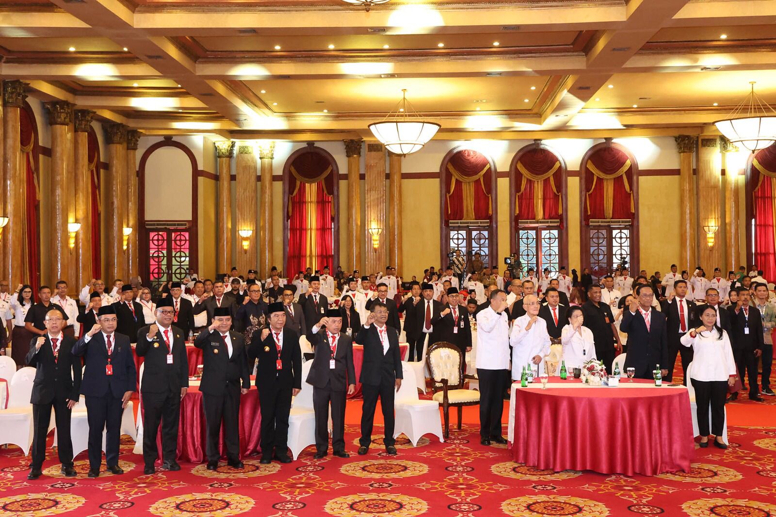 Penjabat (Pj) Gubernur Banten Al Muktabar menghadiri penyerahan duplikat bendera pusaka yang diselenggarakan Badan Pembinaan Ideologi Pancasila Republik Indonesia (BPIP RI) di Balai Samudera, Kelapa Gading, Jakarta Utara, Senin (5/8/2024).