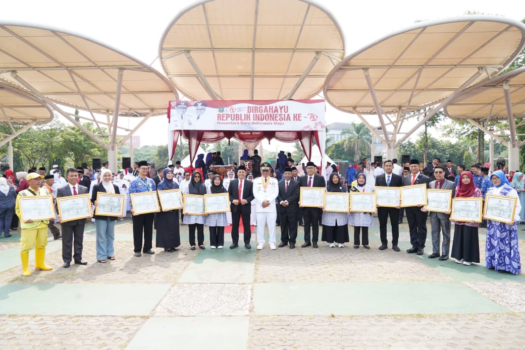 CILEGON, (Haluanbanten.co.id) – Pemerintah Kota Cilegon memberikan penghargaan kepada 55 individu dan perusahaan/instansi yang dinilai berjasa terhadap Kota Cilegon. Penghargaan diberikan saat upacara Hari Ulang Tahun (HUT) ke-79 Republik Indonesia, di Alun-alun Kota Cilegon, Sabtu 17 Agustus 2024.
