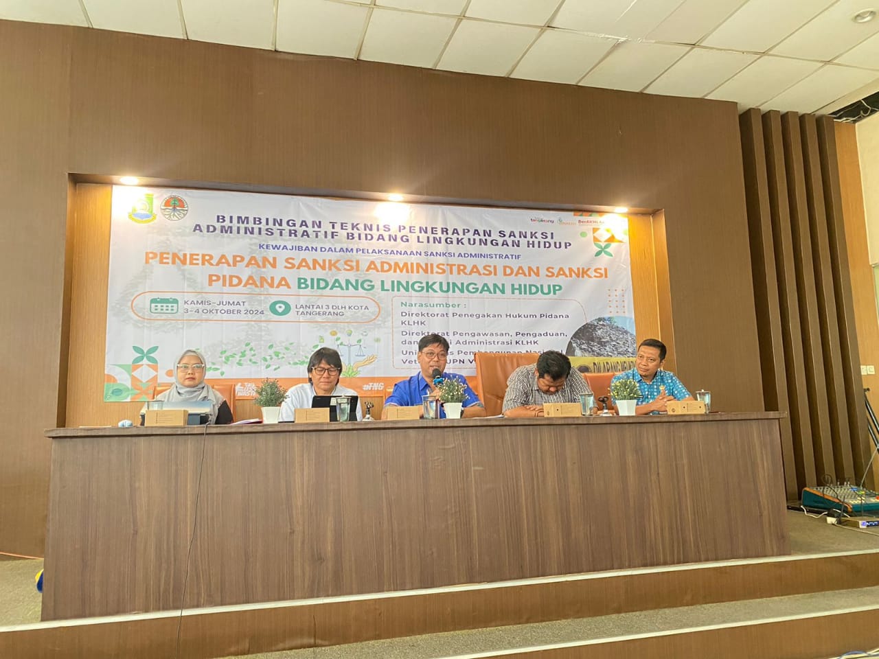 Ia melanjutkan, kegiatan bimtek tersebut juga diisi oleh narasumber-narasumber berkompeten mulai dari Direktorat Penegakan Hukum Pidana Kementerian Lingkungan Hidup dan Kehutanan (KLHK), Direktorat Pengawasan, Pengaduan dan Sanksi Administratif KLHK, sampai akademisi dari Universitas Pembangunan Nasional (UPN) Veteran Jakarta.