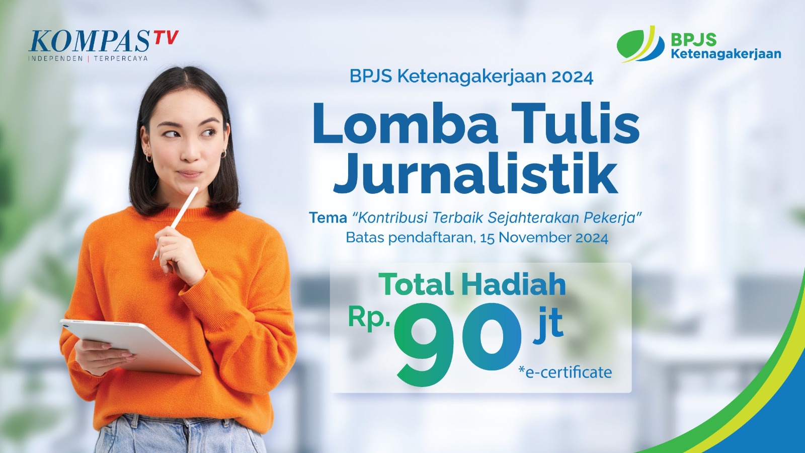 Selain itu, lomba ini juga merupakan kesempatan bagi BPJS Ketenagakerjaan untuk mempererat hubungan dengan media dan jurnalis. Daftarkan sekarang juga dan tunjukkan karya jurnalistik terbaikmu! Untuk informasi lebih lanjut mengenai pendaftaran dan detail lomba, kunjungi laman https://microsite.kompas.tv/lomba-jurnalistik-bpjs.