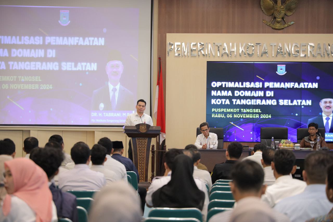 CIPUTAT, (Haluanbanten.co.id) – Pemerintah Kota Tangerang Selatan melalui Dinas Komunikasi dan Informatika (Diskominfo) menggelar acara Optimalisasi Pemanfaatan Nama Domain di Kota Tangerang Selatan di Aula Blandongan, pada Rabu (06/11/2024).