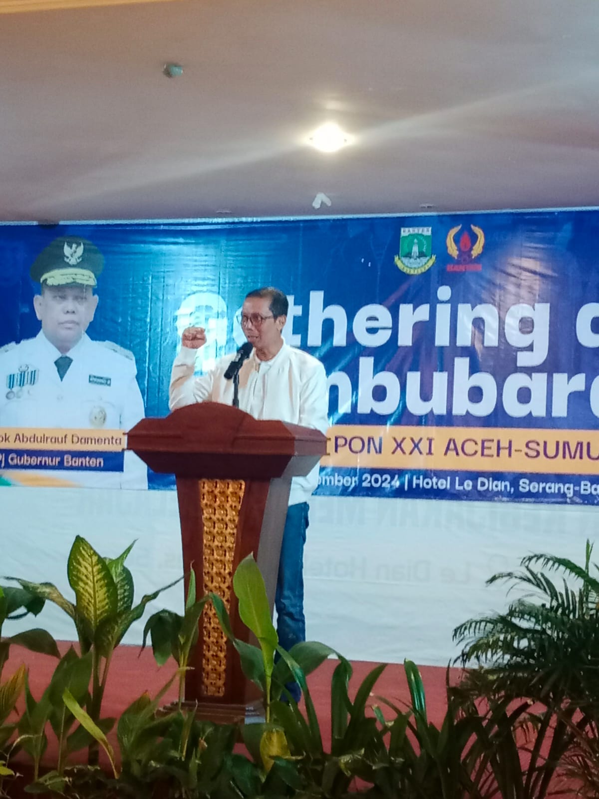 SERANG, (Haluanbanten.co.id) – Kepala Dinas Kepemudaan dan Olahraga Provinsi Banten, Dr. H. Ahmad Syaukani, memberikan apresiasi yang mendalam atas pencapaian luar biasa kontingen Banten pada ajang Pekan Olahraga Nasional (PON) XXI Aceh-Sumut 2024. Dalam acara Gathering dan Pembubaran Kontingen PON XXI yang berlangsung di Hotel Le Dian, Kota Serang. Minggu 22 Desember 2024.