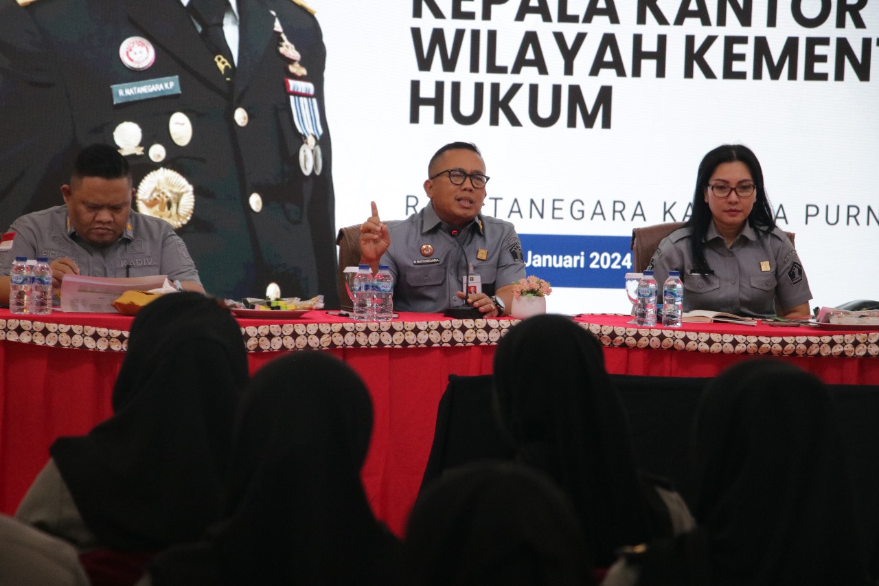 Guna menyukseskan rapat koordinasi, Kepala Kantor Wilayah Kementerian Hukum R. Natanegara memberikan pengarahan kepada seluruh jajaran untuk mempersiapkan dengan matang. Rapat di Bale Soepomo turut diikuti oleh Kepala Divisi Peraturan Perundang-undangan Marsinta Simanjuntak, Kepala Divisi Pelayanan Hukum Picesco Andika Tulus beserta seluruh jajaran, Selasa (14/01/2025).