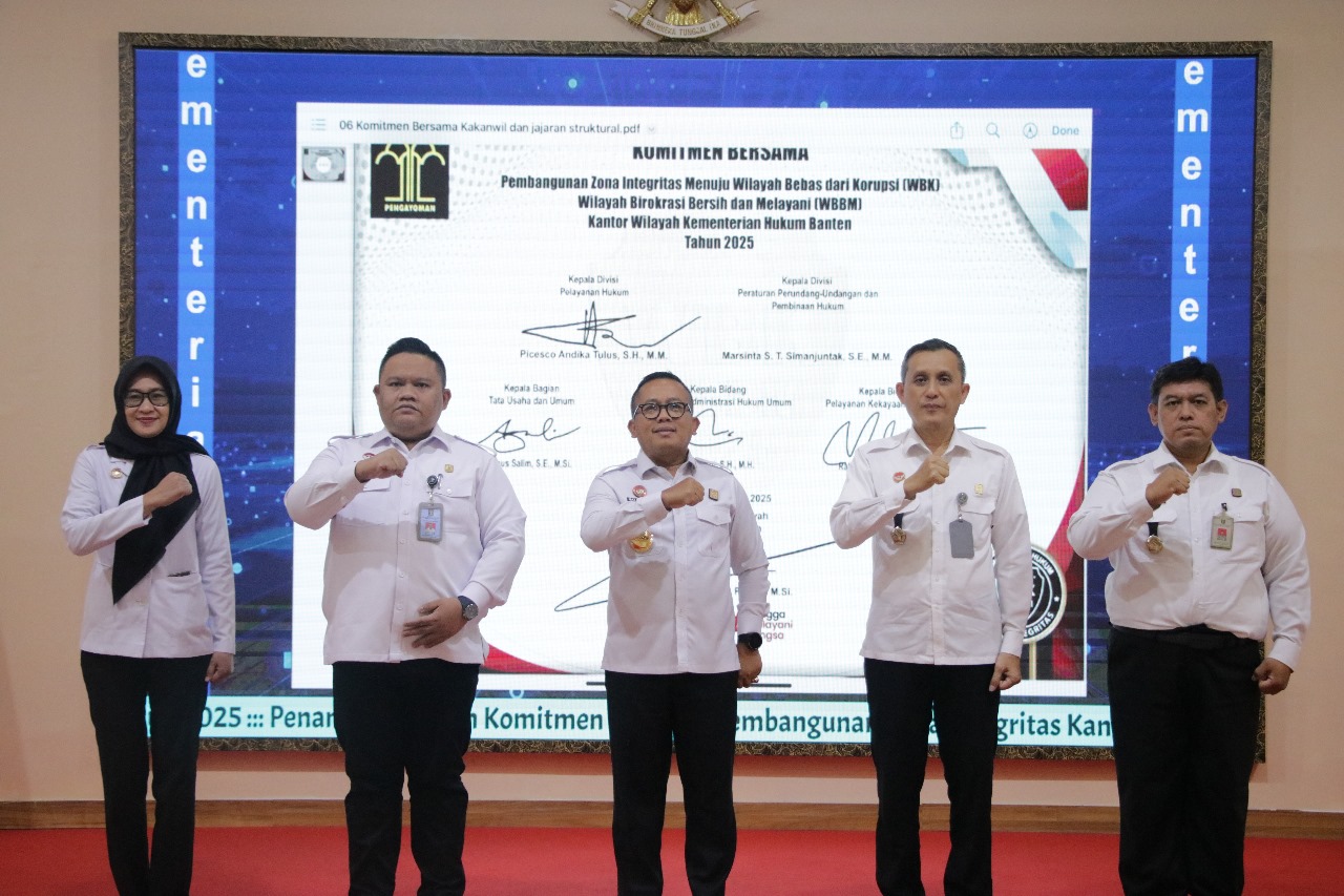 SERANG, (Haluanbanten.co.id) – Kantor Wilayah Kementerian Hukum Banten melakukan penandatanganan komitmen bersama pembangunan zona integritas pada tahun 2025, Kamis (23/01/2025).
