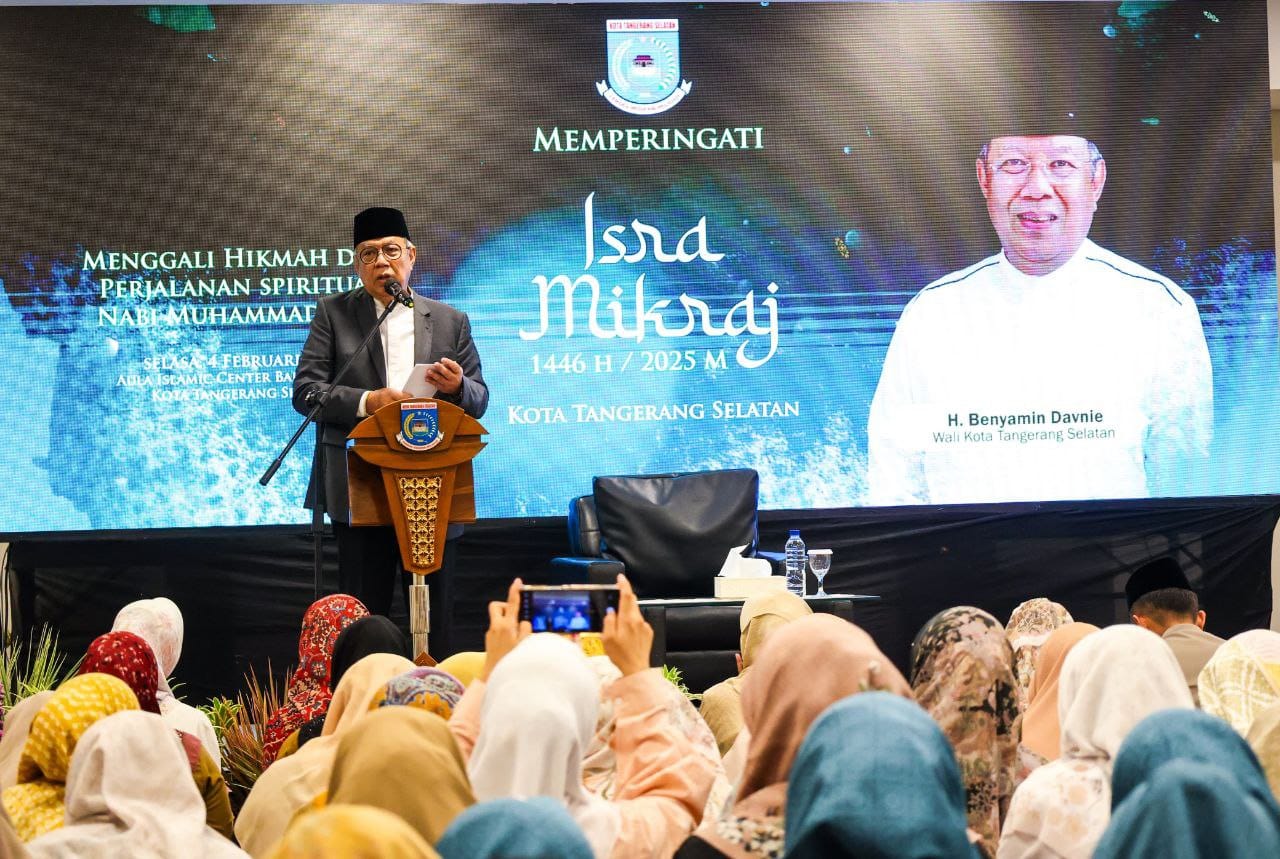 SERPONG, (Haluanbanten.co.id) – Pemerintah Kota Tangerang Selatan menggelar peringatan Isra Mikraj 1446 Hijriah tingkat kota pada Selasa (04/02/2025). Kegiatan yang berlangsung di Islamic Center Baiturrahmi, Kecamatan Serpong ini dihadiri oleh ratusan warga.