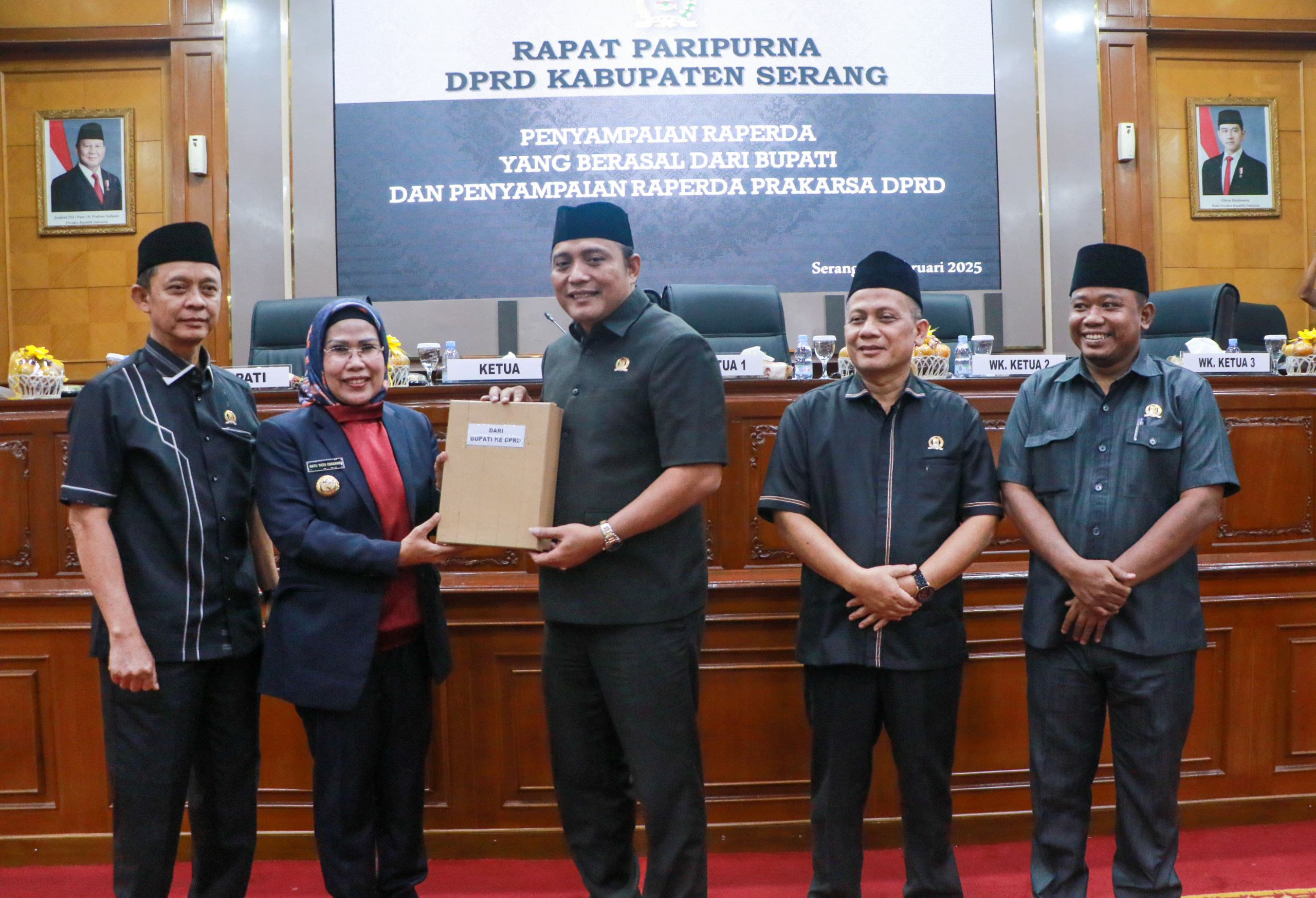 SERANG, (Haluanbanten.co.id) – Bupati Serang Ratu Tatu Chasanah menyampaikan dua (2) macam Rancangan Peraturan Daerah atau Raperda berasal dari Bupati Serang Tahun 2025. Penyampaian dua raperda pada Rapat Paripurna DPRD Kabupaten Serang itu juga penyampaian raperda prakarsa DPRD di gedung dewan setempat pada Rabu, 12 Februari 2025.