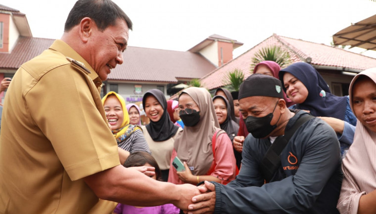 Tangerang –Bupati Tangerang, Moch. Maesyal Rasyid menghadiri dan memantau langsung pelaksanaan Gerakan Pangan Murah (GPM) yang digelar di Halaman Kantor Kecamatan Balaraja, Selasa (4/3/25).