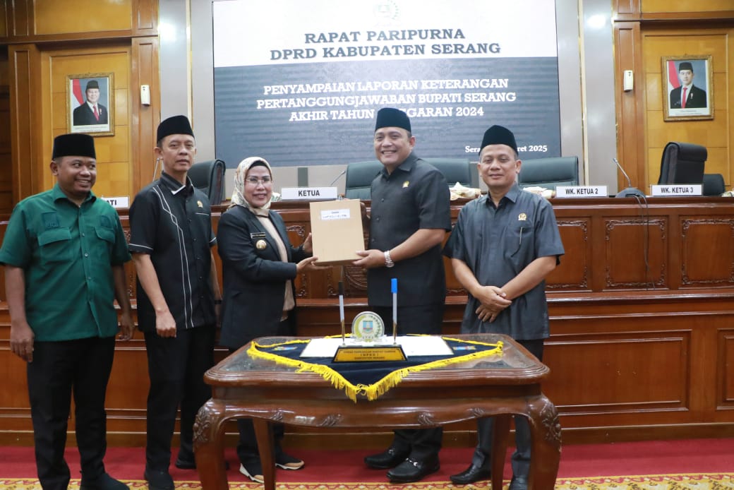 SERANG, (Haluanbanten.co id) – Bupati Serang Ratu Tatu Chasanah menyampaikan Laporan Keterangan Pertanggungjawaban (LKPJ) Tahun 2024 pada Rapat Paripurna DPRD Kabupaten Serang pada Rabu, 26 Maret 2025. Dalam paparannya, Tatu menyebutkan bahwa realisasi beberapa indikator melebihi target yang ditetapkan.