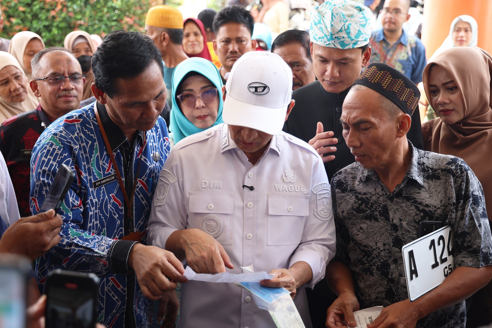 Wakil Gubernur Dimyati Natakusumah meninjau hari pertama pelaksanaan Program Penghapusan Tunggakan Pajak Kendaraan Bermotor (PKB) di Sistem Administrasi Manunggal Satu Atap (Samsat) Samsat Pandeglang, Kamis (10/4/2025).