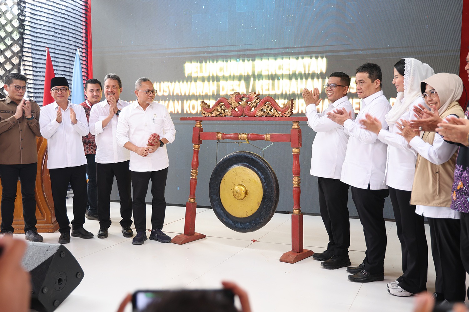 Turut hadir pada kesempatan itu, Menteri Desa Pembangunan Daerah Tertinggal dan Transmigrasi Yandri Susanto, Menteri Kelautan dan Perikanan Sakti Wahyu Trenggono, Wakil Menteri Desa Pembangunan Daerah Tertinggal dan Transmigrasi Riza Patria, Wakil Menteri Perdagangan Dyah Roro Esti Widya Putri, serta tamu undangan yang lainnya.