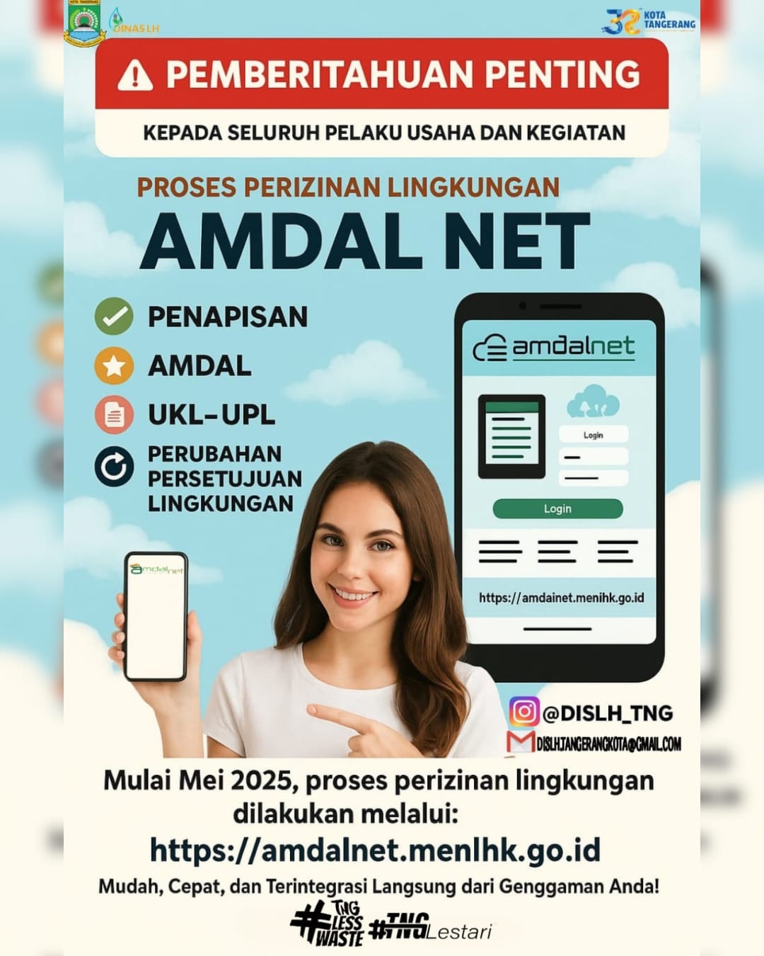 Kepala DLH Kota Tangerang Wawan Fauzi menuturkan, layanan AMDAL NET merupakan sistem layanan terintegrasi yang diluncurkan Kementerian Lingkungan Hidup (KLH) RI untuk menggantikan layanan pengurusan dokumen perizinan lingkungan secara manual.