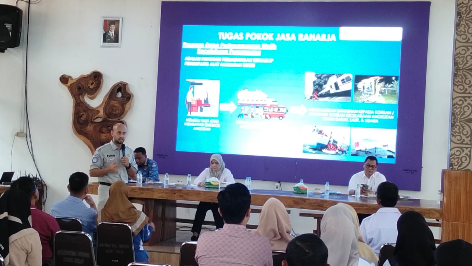 Selanjutnya, Muhamad Ikbal selaku perwakilan dari Jasa Raharja Tangerang menjelaskan pentingnya pembayaran Pajak Kendaraan Bermotor dan Sumbangan Wajib Dana Kecelakaan Lalu Lintas Jalan (SWDKLLJ) karena memiliki kontribusi dalam memberikan santunan Jasa Raharja bagi korban kecelakaan lalu lintas.