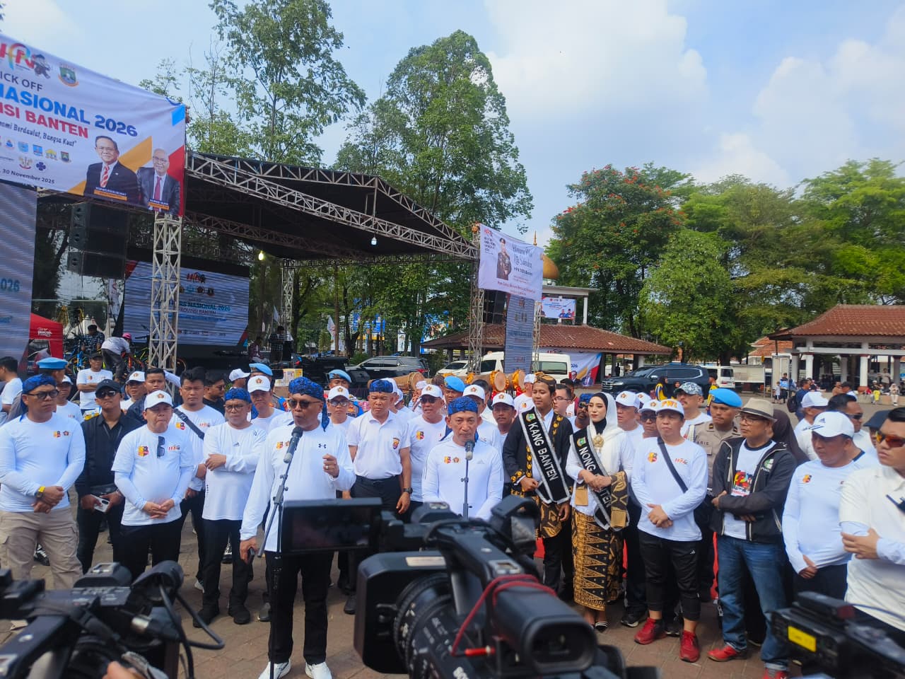 SERANG, (Haluanbanten.co.id) – Hari Pers Nasional (HPN) 2026 resmi dimulai dengan penyelenggaraan Kick Off HPN 2026 yang berlangsung meriah pada Minggu, (30/11/25), berlokasi di Alun-Alun Kota Serang. Ribuan masyarakat hadir mengikuti rangkaian kegiatan, termasuk jalan santai bersama Kapolri Jenderal Polisi Listyo Sigit Prabowo, yang menjadi salah satu momen paling ditunggu.
