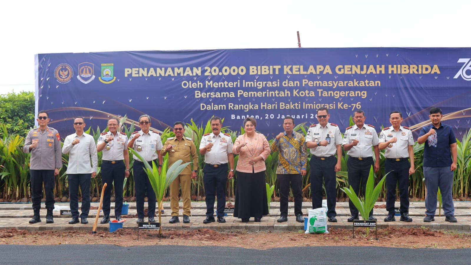 Lebih lanjut, Menteri IMIPAS menekankan bahwa kegiatan penanaman dan penyerahan bibit kelapa merupakan langkah Imigrasi dalam mendukung pembangunan ekonomi berkelanjutan.