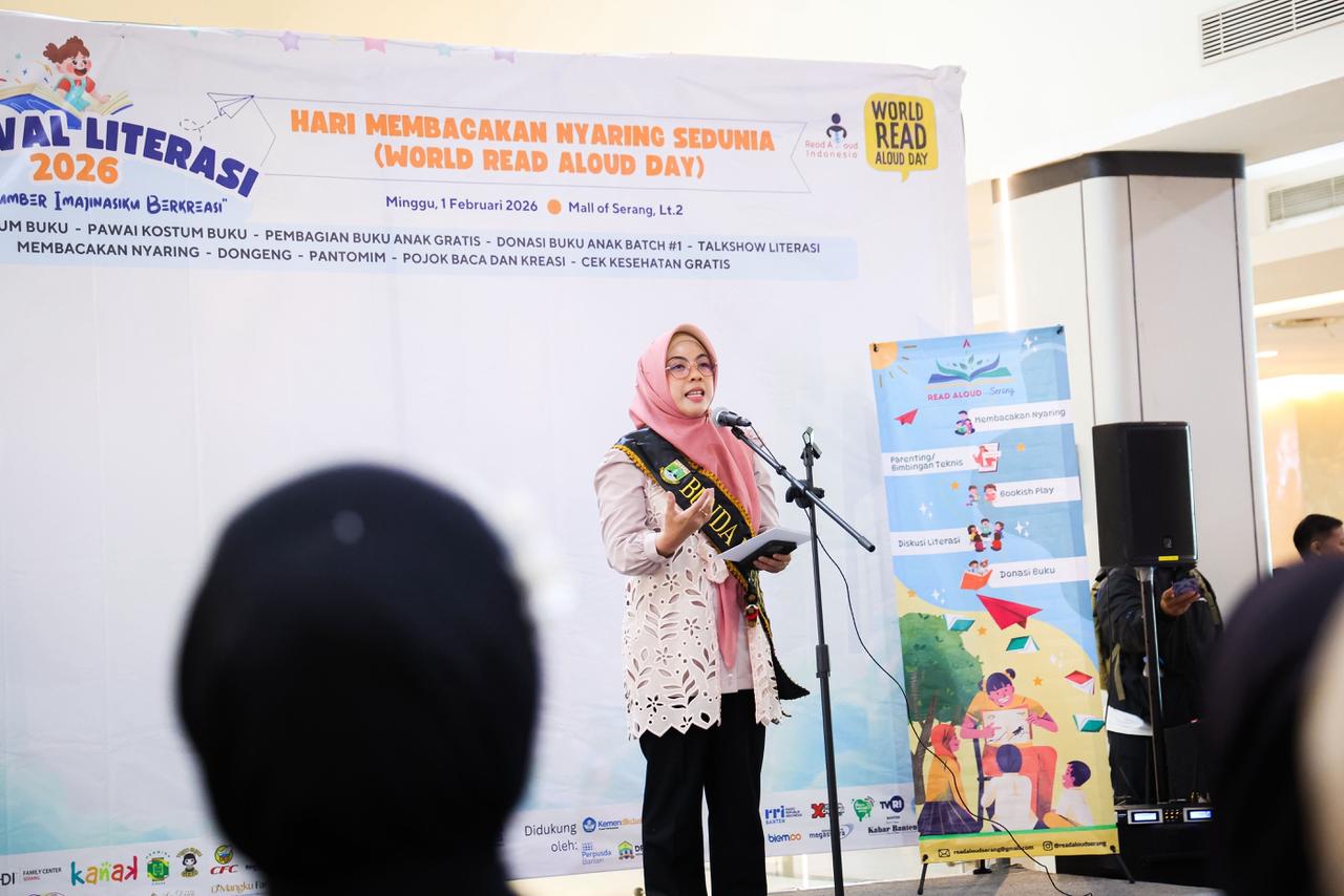 “Membiasakan anak-anak sejak dini untuk membaca adalah tanggung jawab kita semua, tanggung jawab yang besar,” kata Tinawati Festival Literasi 2026 yang digelar dalam rangka Hari Membacakan Nyaring Sedunia (World Read Aloud Day), bertempat di Mall of Serang, Minggu (1/2/2026).