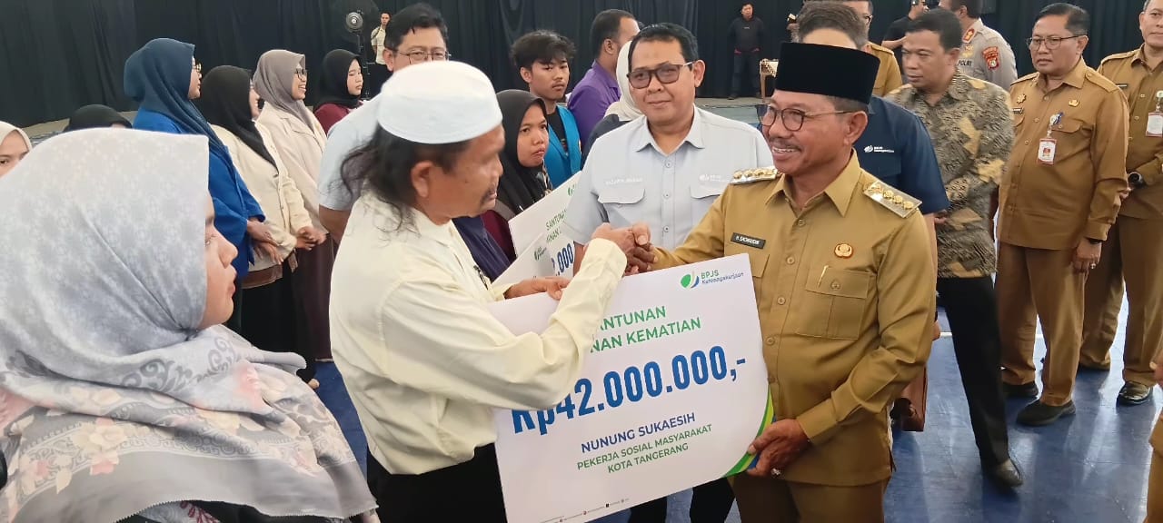 TANGERANG, (haluanbanten.co.id) – Pemkot Tangerang bersama Badan Penyelenggara Jaminan Sosial Ketenagakerjaan (BPJSTK) menyalurkan santunan kematian pada ahli waris, Rabu 3 Februari 2026.