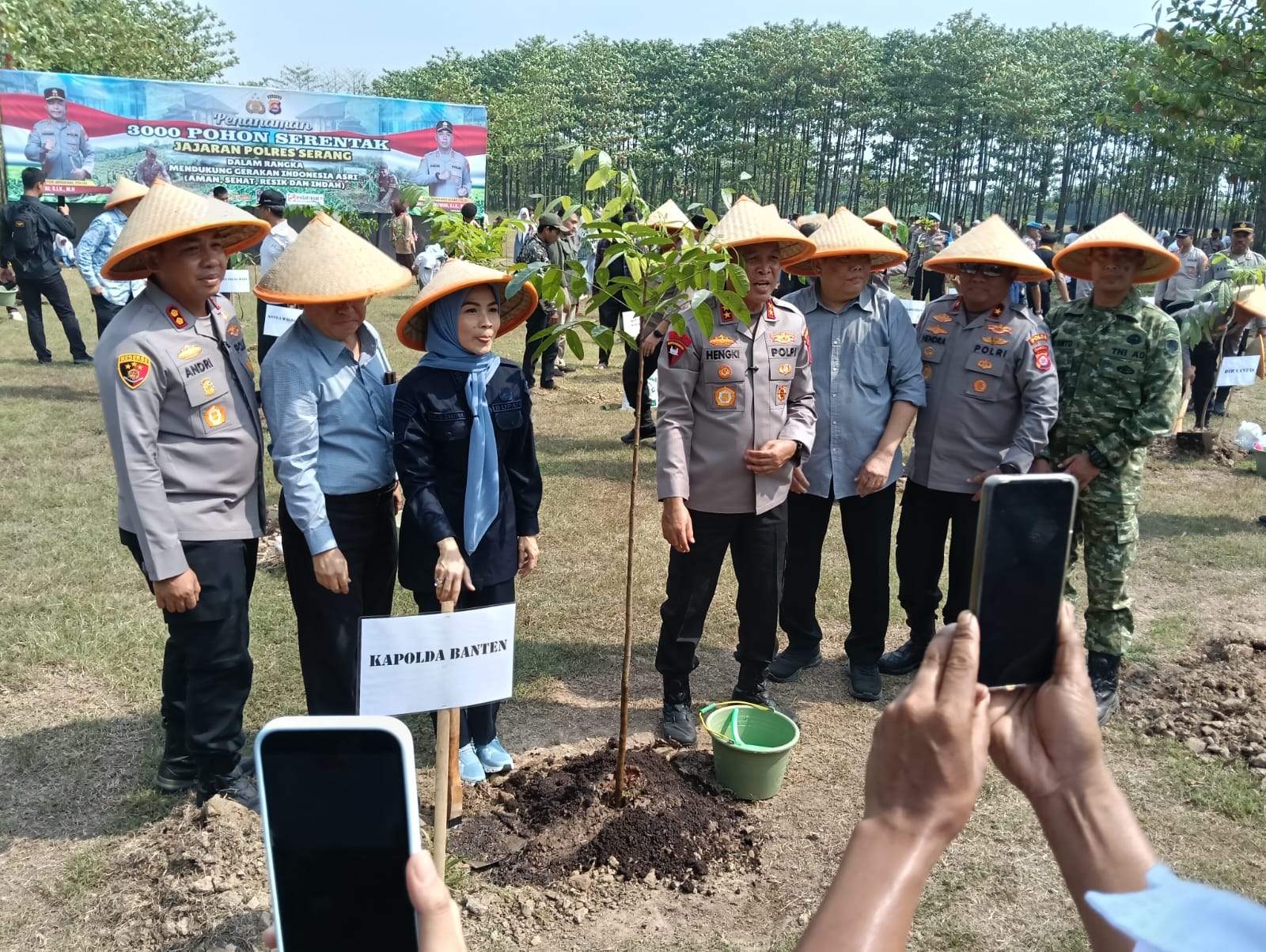 SERANG, (Haluanbanten.co.id) – Kapolda Banten Irjen Pol Hengki bersama Kapolres Serang AKBP Andri Kurniawan dan Bupati Serang Rachmatuzakiyah melaksanakan kegiatan penanaman pohon serentak yang diinisiasi Polsek jajaran Polres Serang, Selasa 21 April 2026.