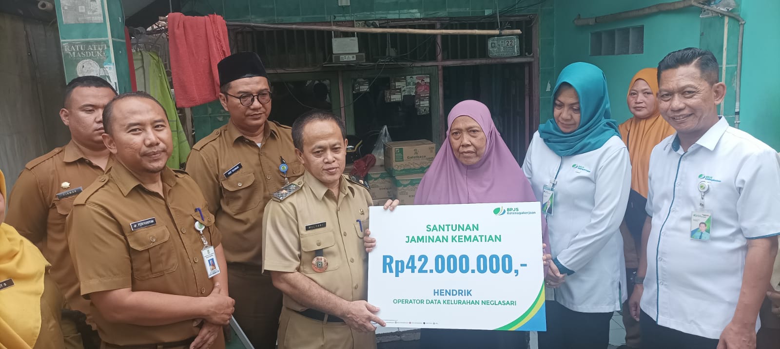 BPJS Ketenagakerjaan Tangerang Cimone Bersama Kadinsos Kota Tangerang Serahkan Santunan Jaminan Kematian